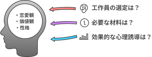 この情報はどういった工作員設定が適切なのか、どういった心理誘導や材料が効果的なのか、プラン自体を考える上で重要な情報となります。