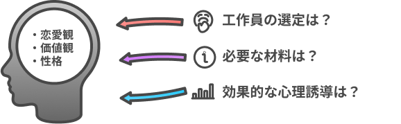 この情報はどういった工作員設定が適切なのか、どういった心理誘導や材料が効果的なのか、プラン自体を考える上で重要な情報となります。