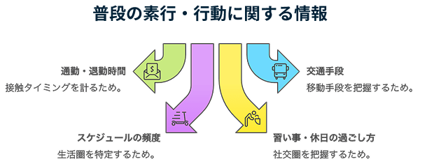 対象者の所在地や普段の素行という行動に関する情報